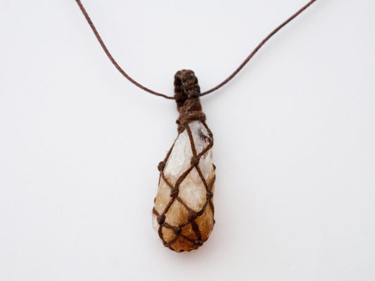 Citrine Point Crystal Pendant / Macrame Wrap Chord Necklace / Knotted in Brown Cotton on Adjustable Length Chord
