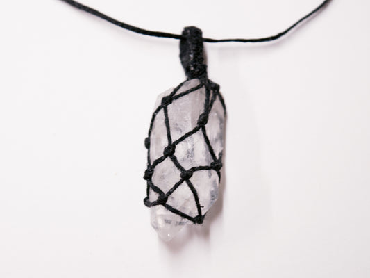 Clear Quartz Druzy Pendant / Crystal Macrame Wrap Chord Necklace / Knotted in Black Cotton on Adjustable Length Chord