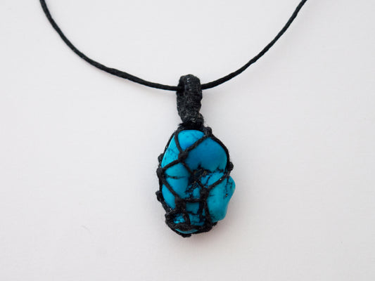 Turquoise Crystal Pendant / Macrame Wrap Chord Necklace / Knotted in Black Cotton on Adjustable Length Chord