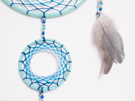 • 6" Baby Blue Celestite Crystal Double Dreamcatcher Wall Hanging
