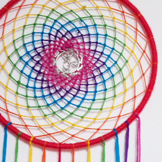 • 6" Rainbow Dreamcatcher with Silver Om Centre