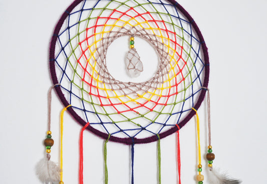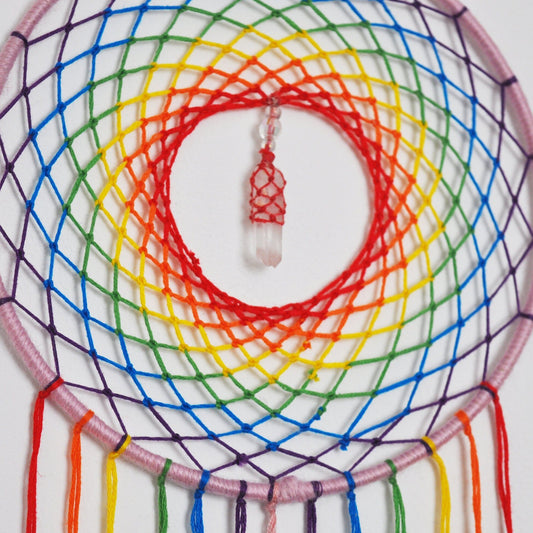 • 6" Rainbow Dreamcatcher with Clear Quartz Point Centre
