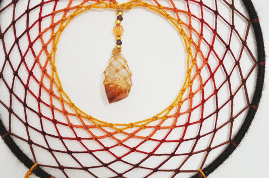 6" Orange Dreamcatcher with Citrine Crystal Centre