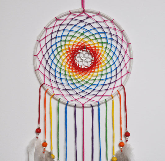• 6" Rainbow Seed of Life Dreamcatcher / Sacred Geometry Wall Hanging